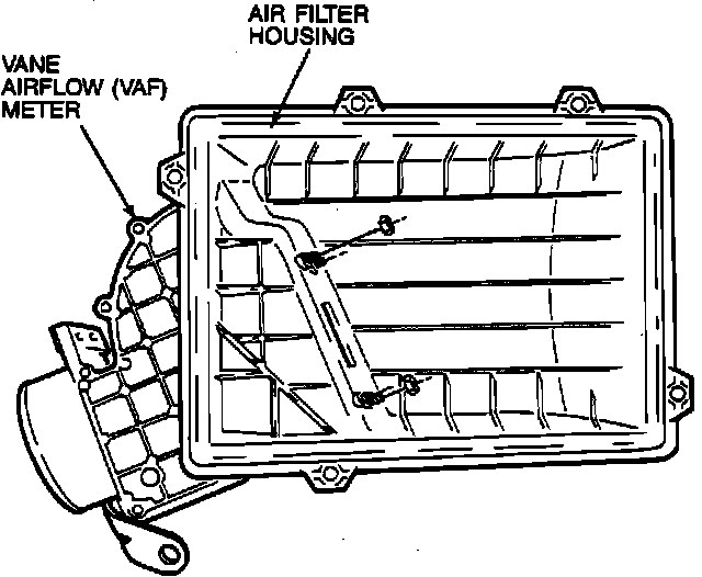 6. Remove the vane air flow meter attaching nuts from inside the air cleaner cover.