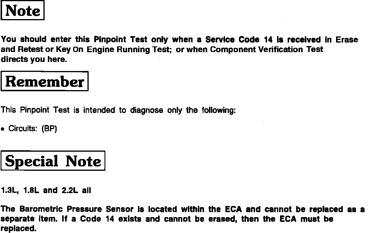 Pinpoint Test BP Testing Notes: