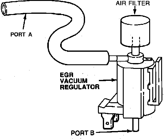 DIAGNOSTIC AID: If a functional test of the EGR system is required as part of the emissions testing procedure, the EGR system can be checked by placing a "T" fitting in the vacuum line at the EGR valve, connecting a vacuum gauge to the fitting with a long hose, so that the gauge is visible while driving. Drive the vehicle at approximately 30 mph for a short distance. The EGR system should actuate the vacuum signal to the valve when the engine control system goes into closed loop operation. If the system does not actuate refer to COMPUTERIZED ENGINE CONTROLS/DIAGNOSIS AND TESTING for further test procedures.
