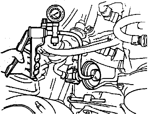 2. Connect a vacuum pump to the EGR valve. START and warm the engine to operating temperature. With the engine at idle, apply 40-60 mm-Hg (1.6-2.4 in-Hg) of vacuum to the EGR valve. The engine should idle rough at this level, and stall when more vacuum is applied. If the engine does not idle rough, and will not stall when the vacuum is increased, the valve is not functioning. Check for an obstruction to the valve and if no obstruction is found, refer to Powertrain Management/Emission Control Systems/Exhaust Gas Recirculation/Service and Repair. If after cleaning the system will not function, replace the EGR valve.