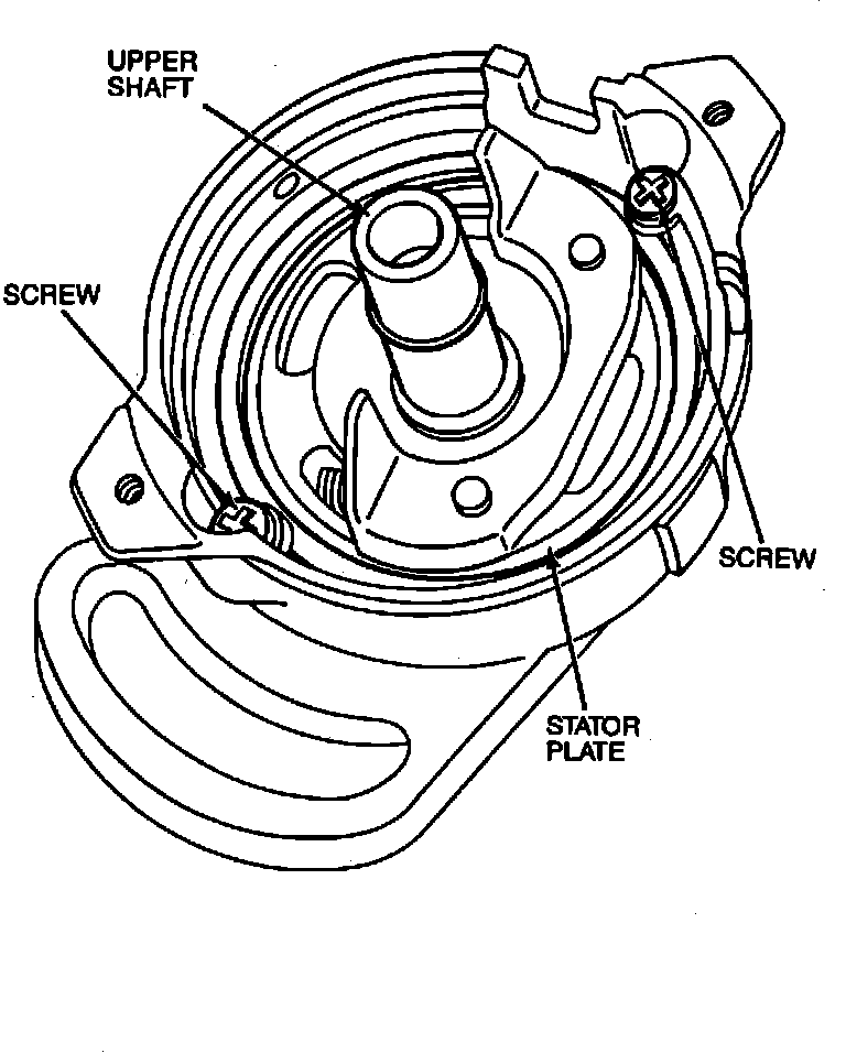 8. Remove stator plate retaining screws, then the stator plate from the upper shaft.