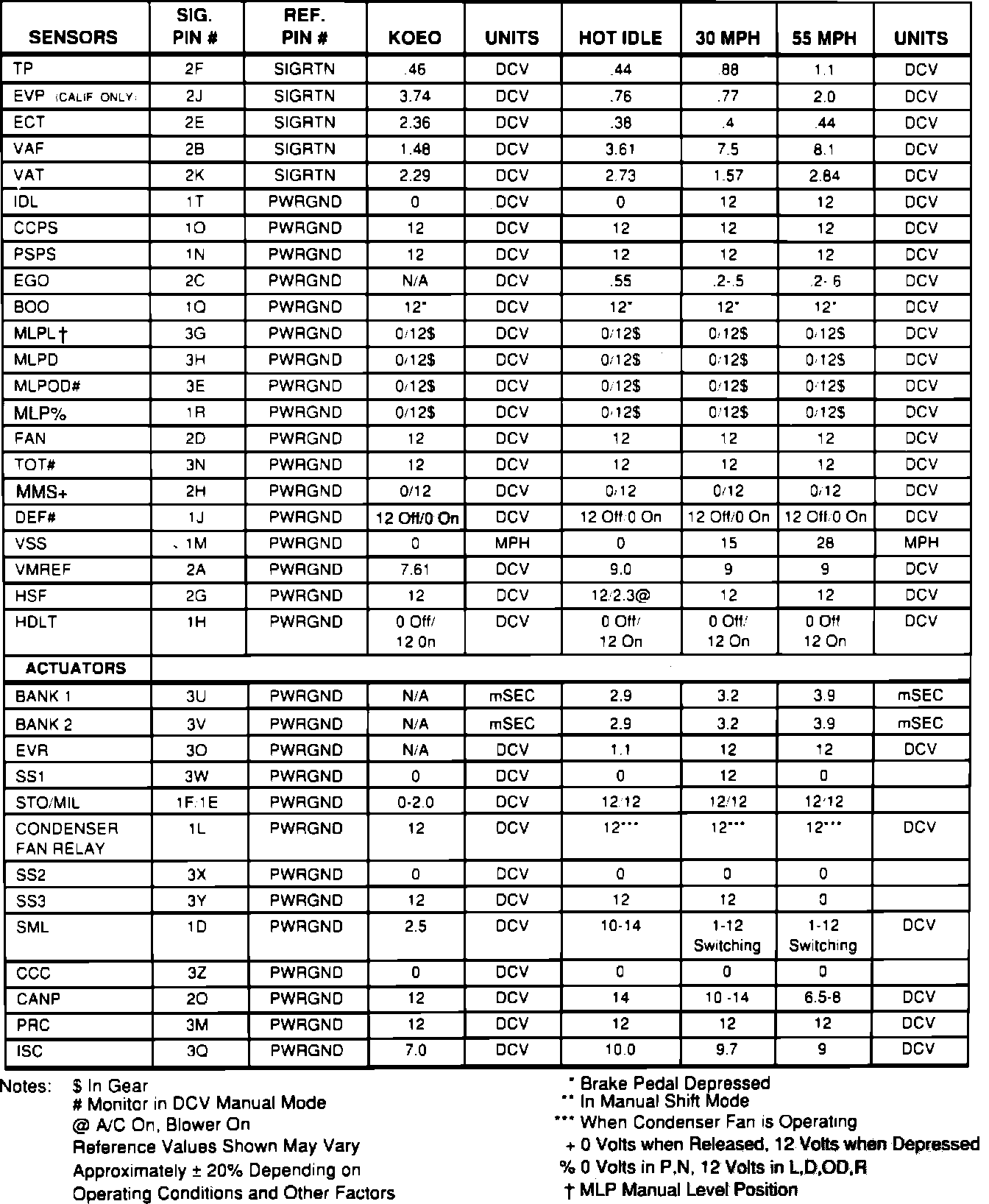 Diagnostic Reference Values 2.2L 4EAT: