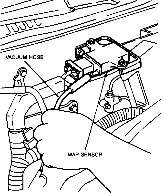 1. Disconnect the vacuum hose and electrical connector from the Barometric/Manifold Absolute Pressure BP/MAP sensor.
