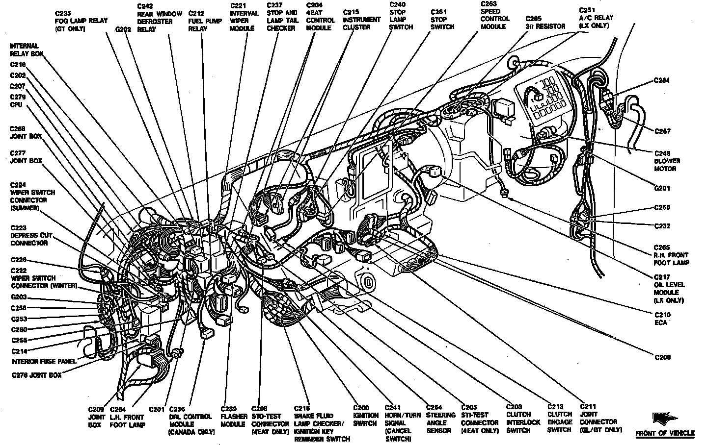 Instrument Panel Component Locations: