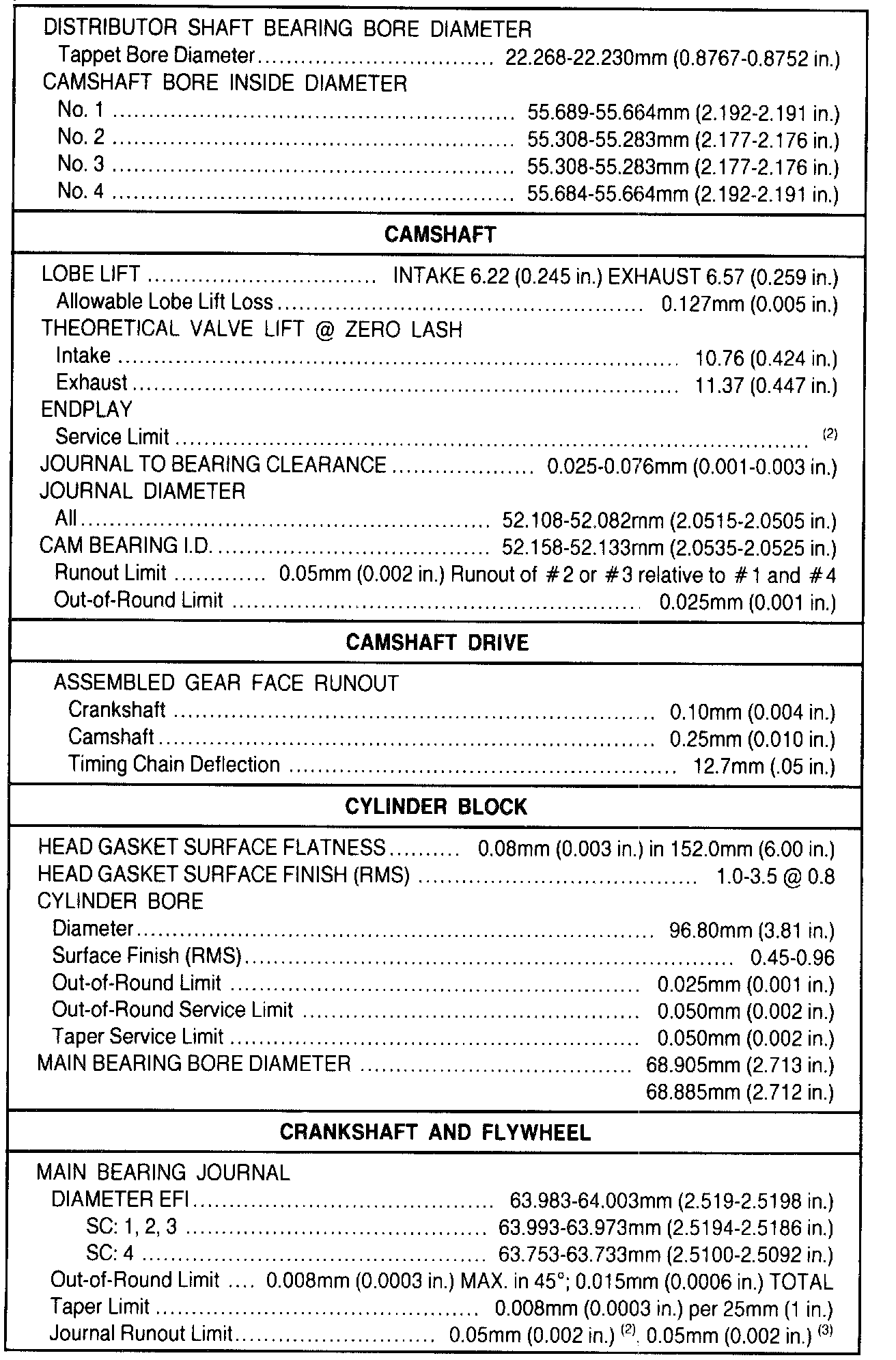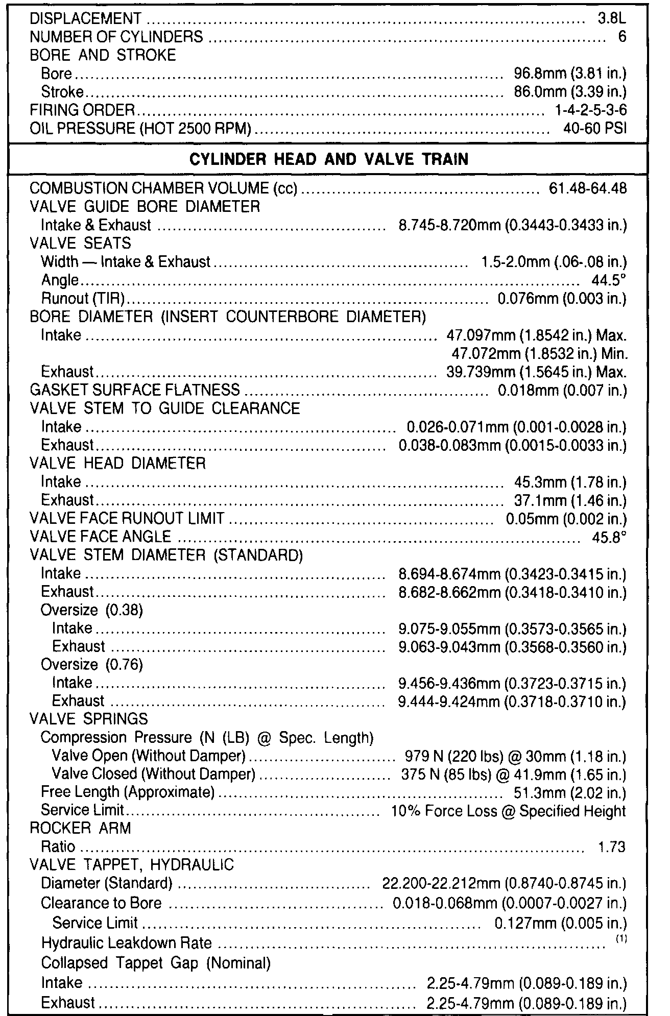 (1) 20-200 seconds to leakdown 3.18 (0.125 in) with 225 Newtons (50 pounds) load and tappet filled with leakdown fluid.