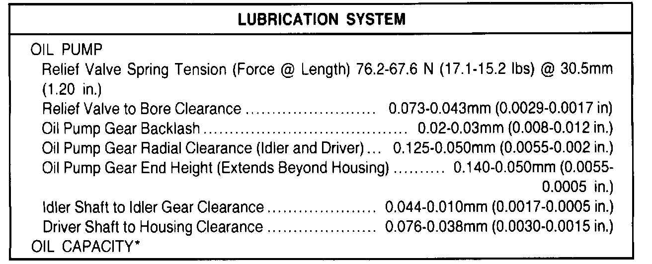 * Passenger Car: 4 qt. + 1 with filter change.