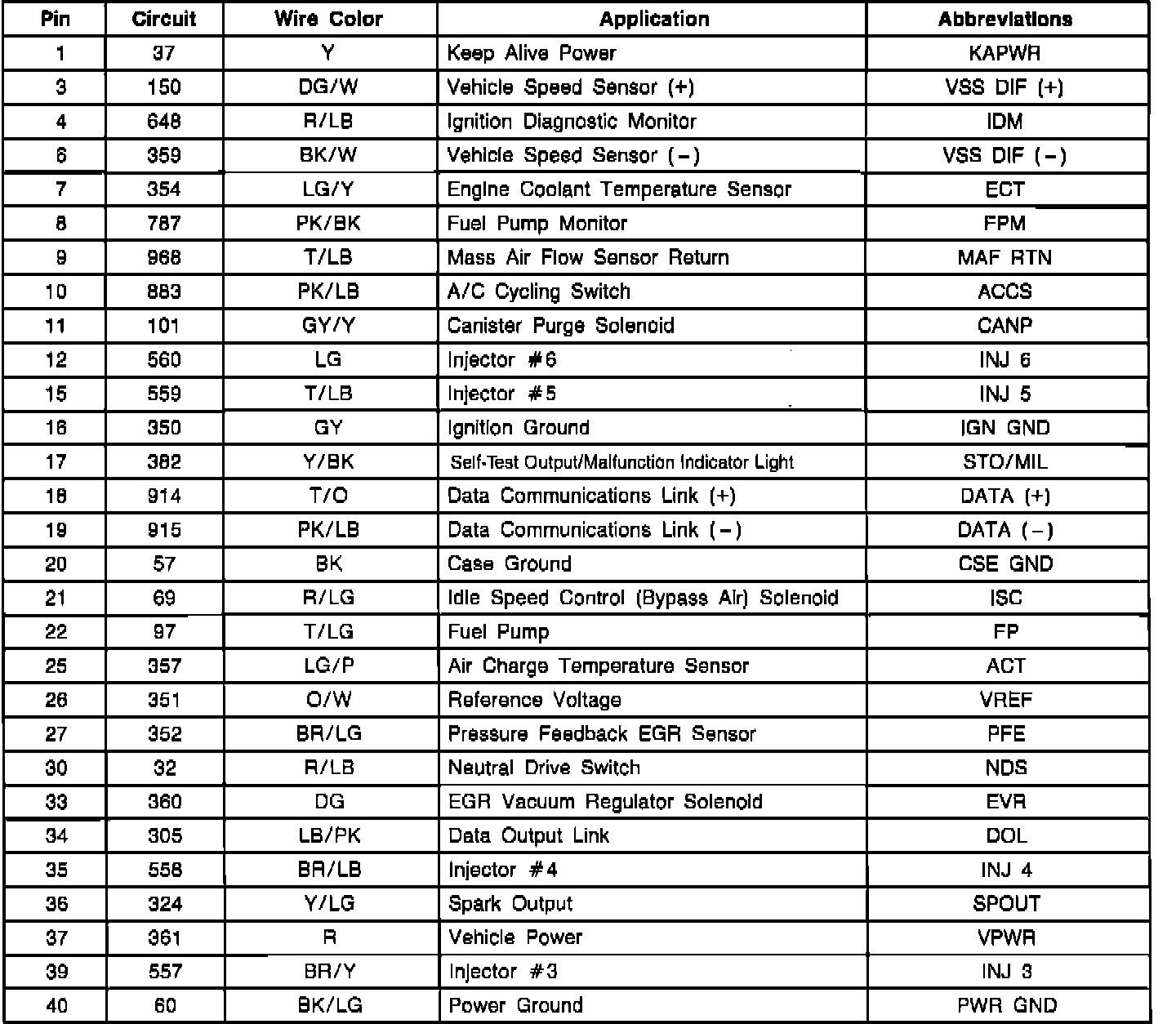 Electronic Control Assembly (ECA) Connector Pinout: