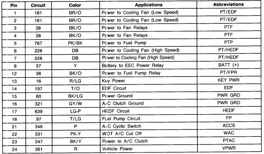 The Integral Relay Control Module (IRCM) interfaces with the EEC-IV processor to provide control of the cooling fan, A/C clutch, and the fuel pump.