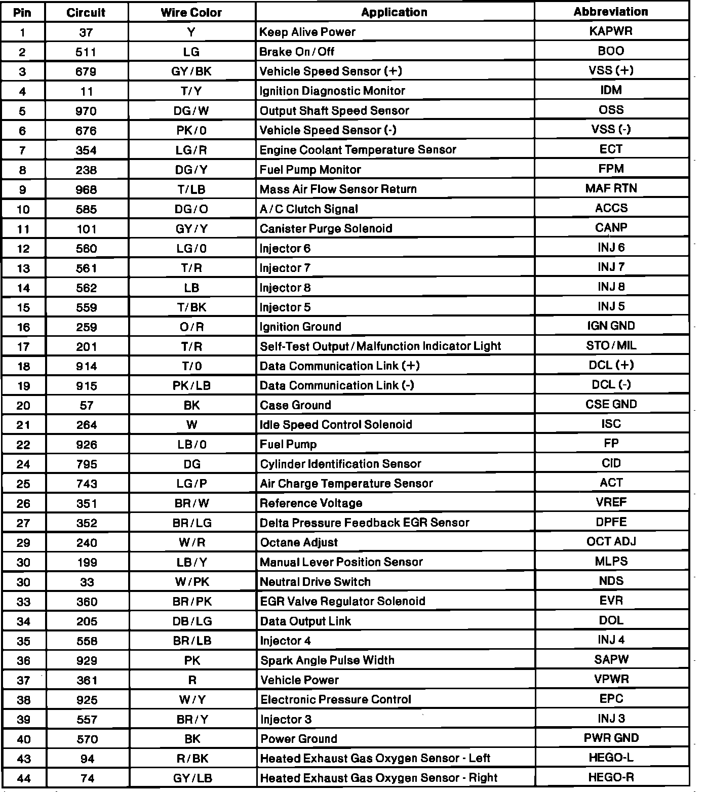 Electronic Engine Controller Connector Pinout: