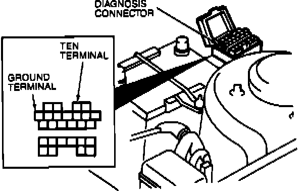 6. Connect tachometer positive lead to diagnosis connector IG terminal and negative lead to the negative battery post. Check idle speed and adjust if necessary.
