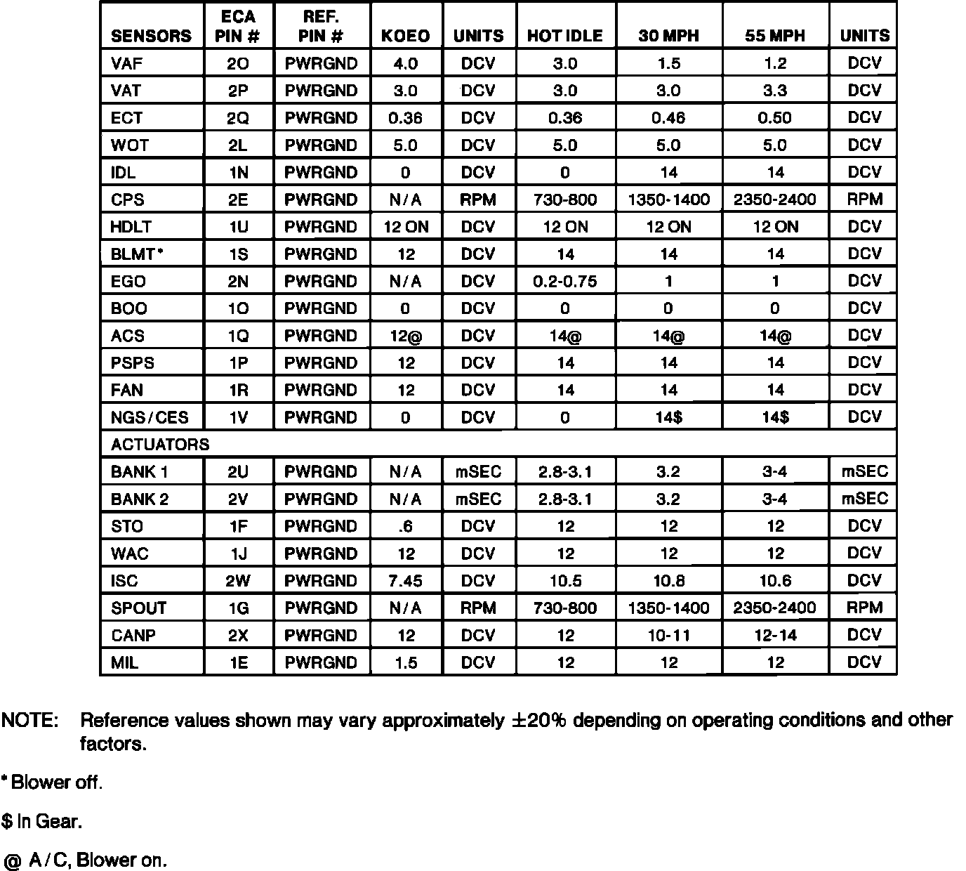 Reference Values: