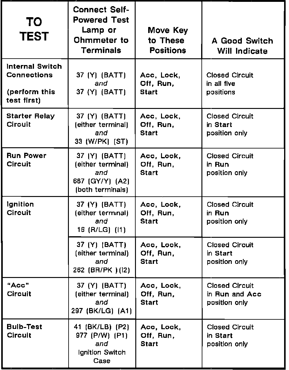 Ignition Switch: Testing and Inspection