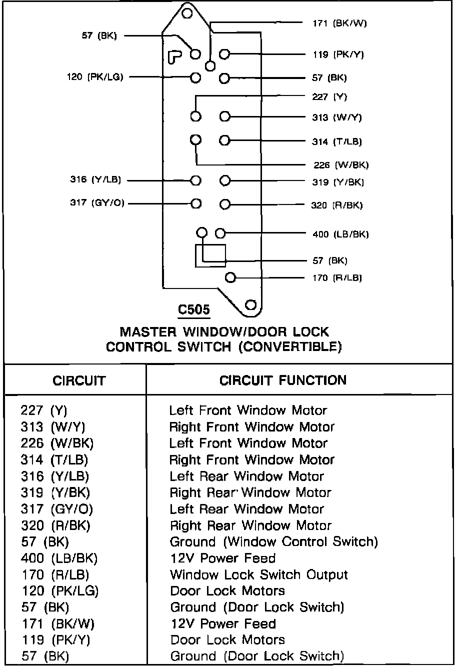 Maser Window/Door Lock Control Switch (Convertible):