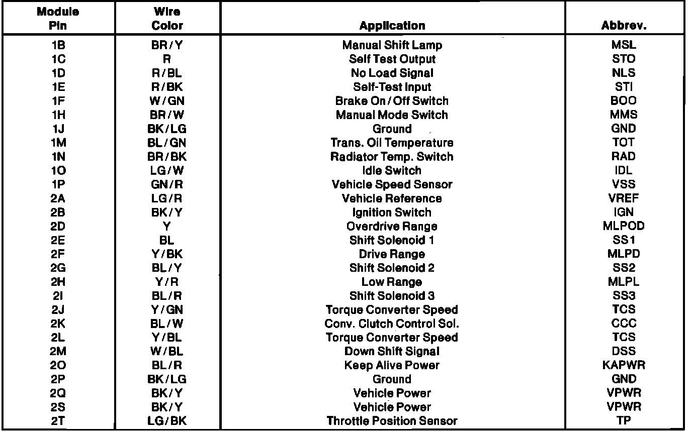 Control Module Pinout:
