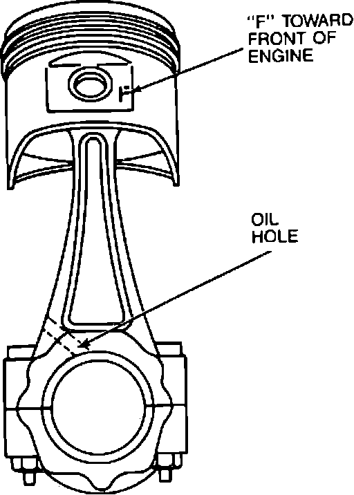 with F mark on piston and oil hole in connecting rod positioned as shown,