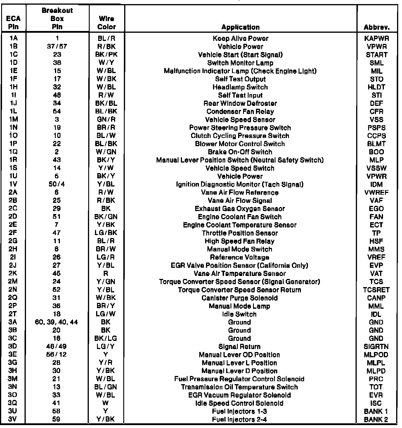 Electronic Control Assembly Connector Terminal I.D.: