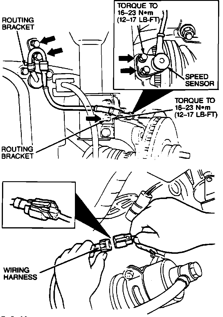 b. Torque routing bracket nut and speed sensor bolt to to 12-17 ft. lbs.