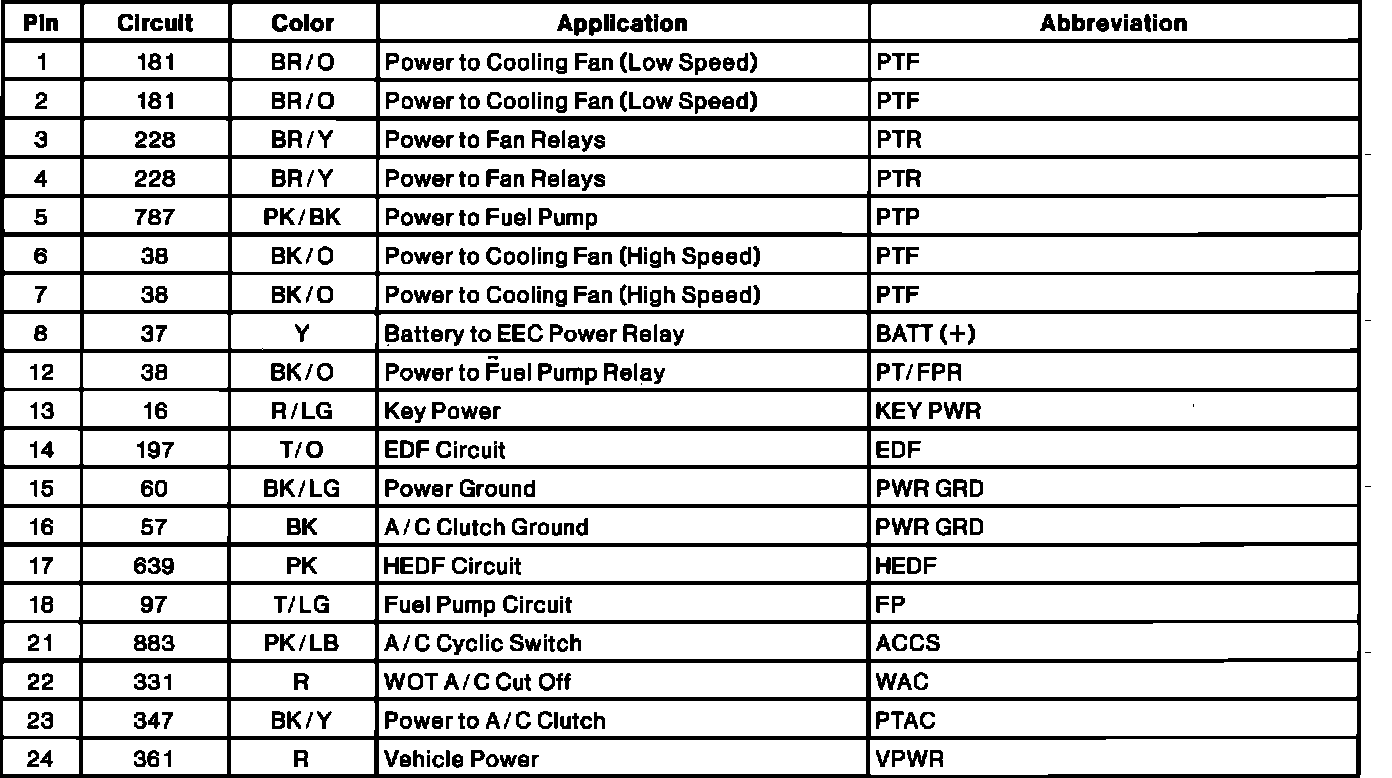 Intergrated Relay Control Module (IRCM) Pinout: