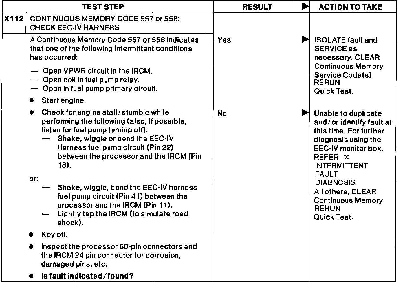 X112 - Continuous Code 557 or 556: Check EEC-IV Harness
