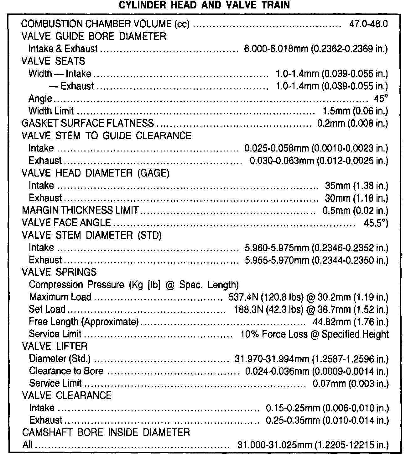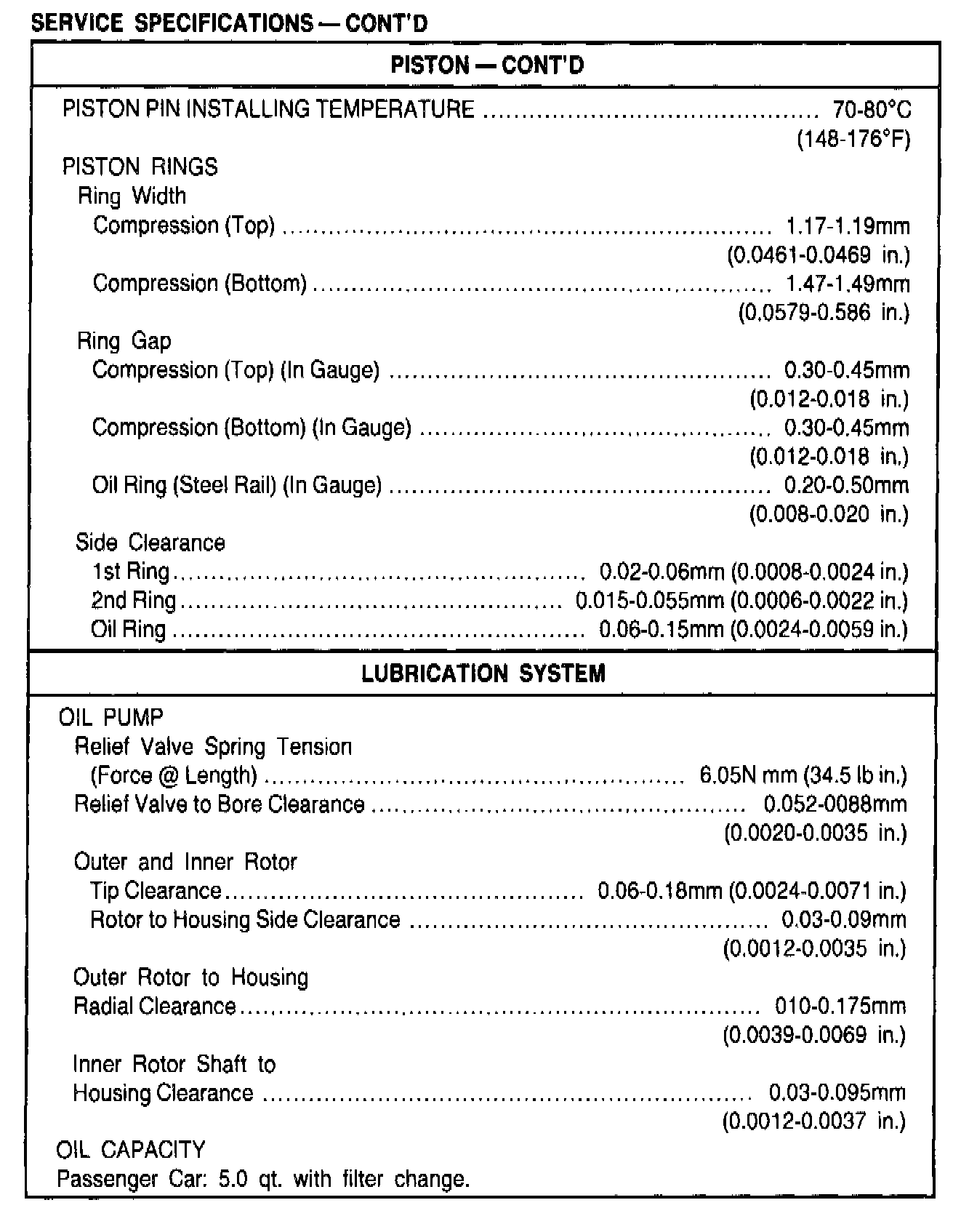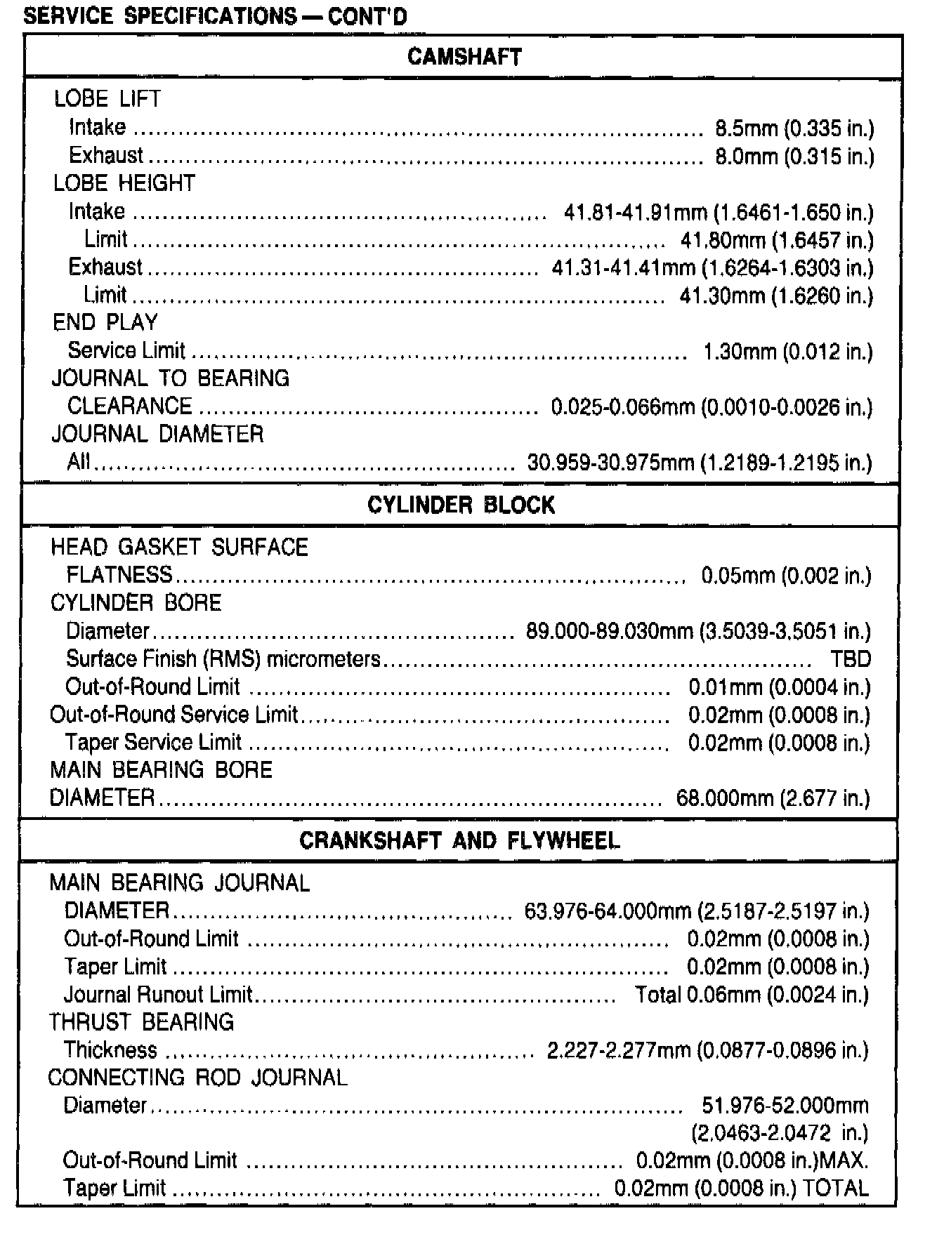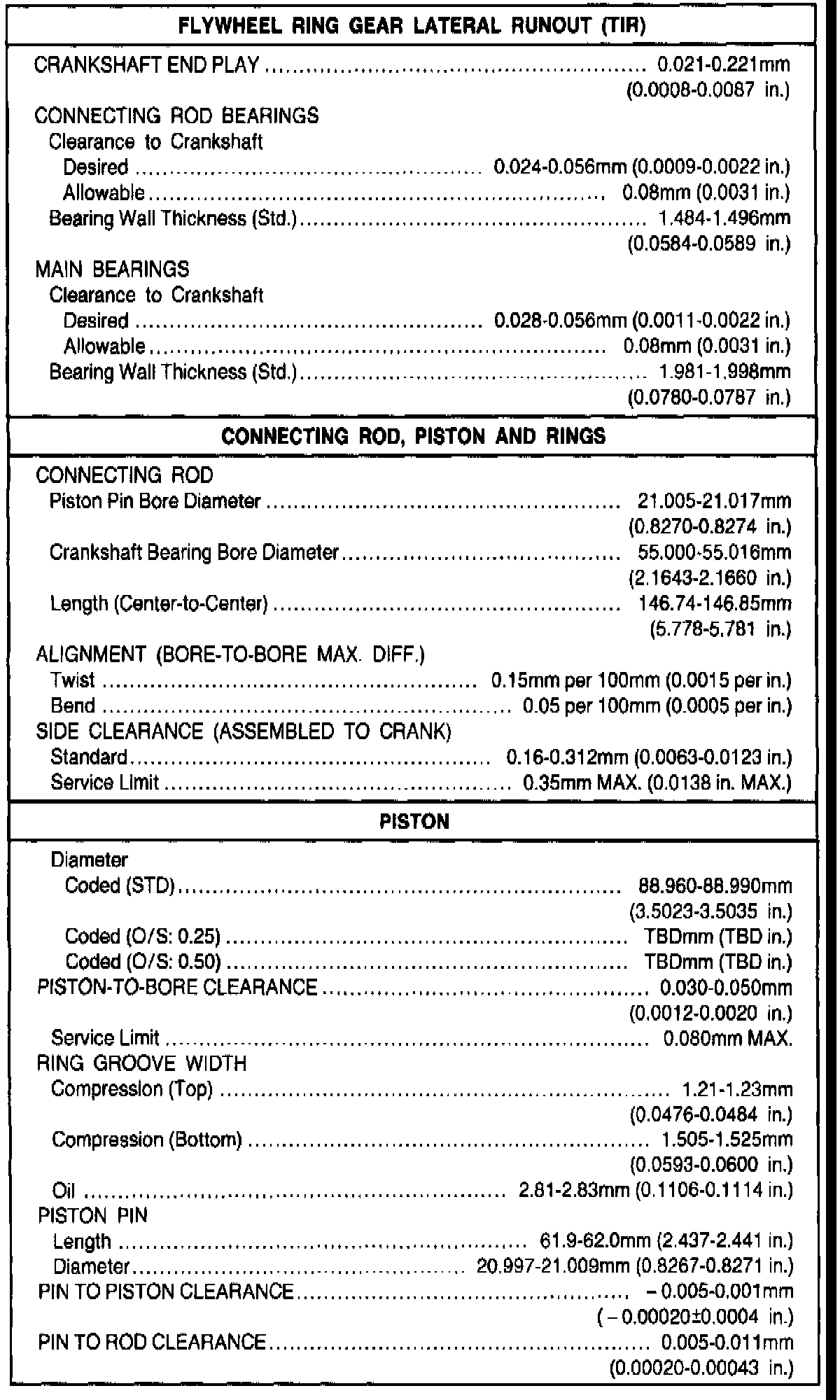 General Engine Specifications