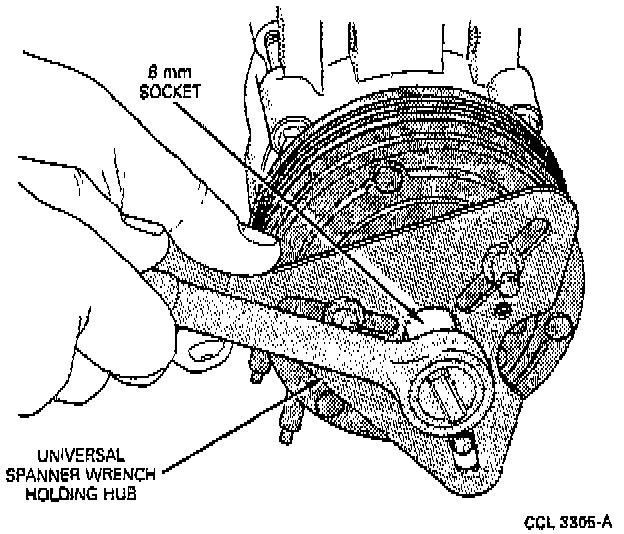 1. Remove the clutch hub retaining bolt. Use Spanner Wrench T7OP-4067-A or equivalent.