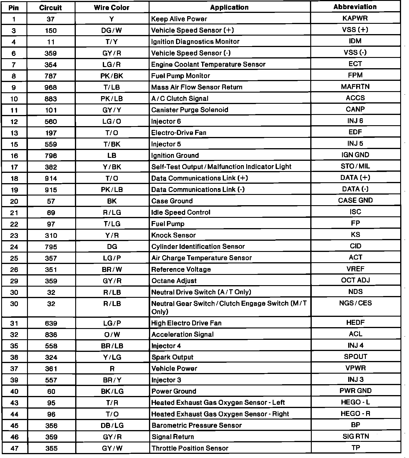 Electronic Engine Controller Connector Pinout: