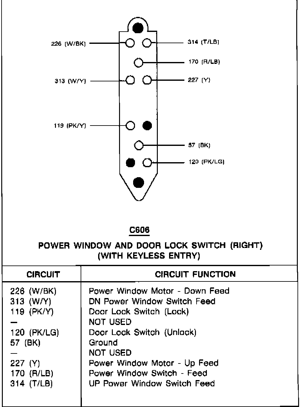 Power Window And Door Lock Switch (Right) (With Keyless Entry):