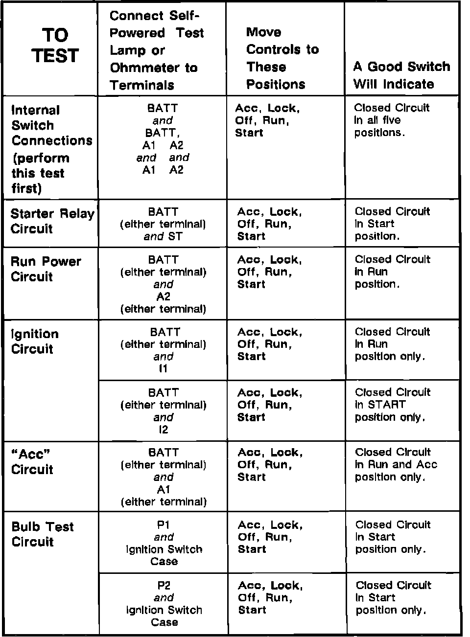 Ignition Switch: Testing and Inspection