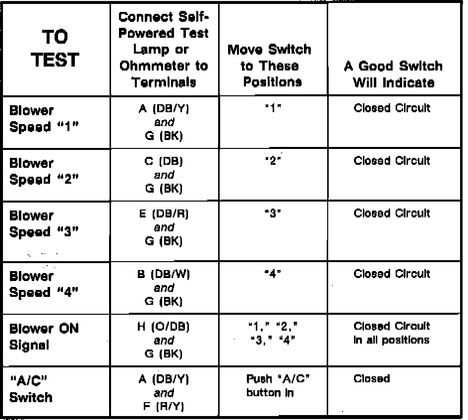 A/C-Heater Control Assembly Terminal Locations: