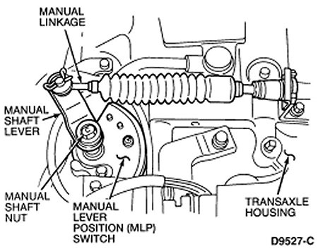 2. Remove the nut securing the manual shaft lever to the transaxle manual shaft.