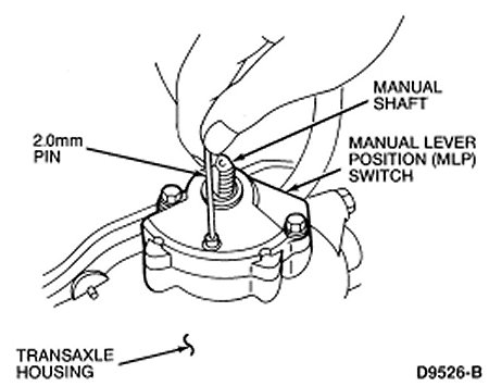 6. Align the hole of the MLP switch with the hole on the manual shaft lever by inserting a 2.0 mm (0.079 inch) OD pin.