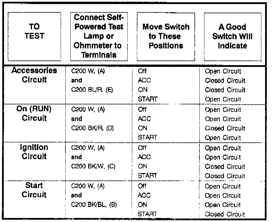 Ignition Switch Testing Procedure: