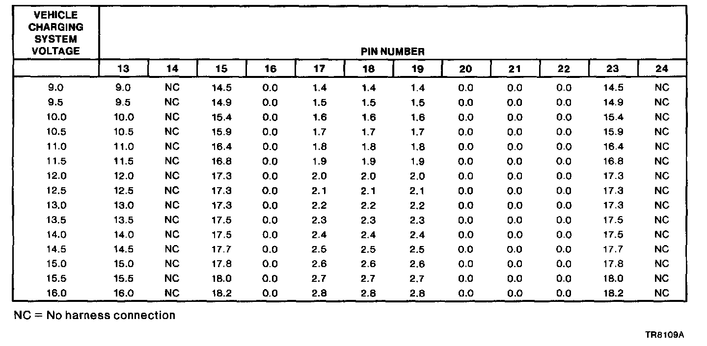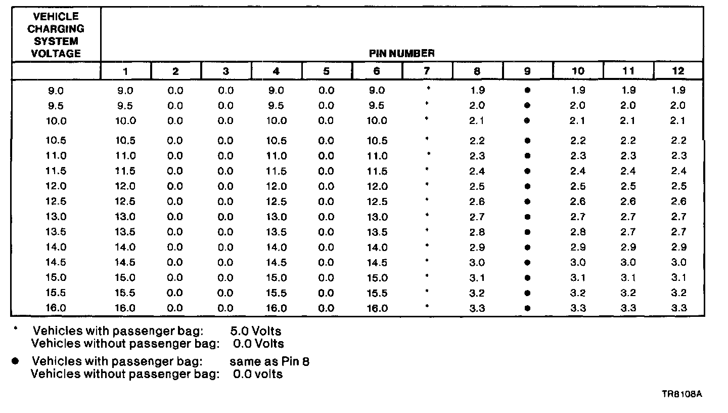 Air Bag Diagnostic Monitor Typical Pin Voltages With System Connected And Engine Running