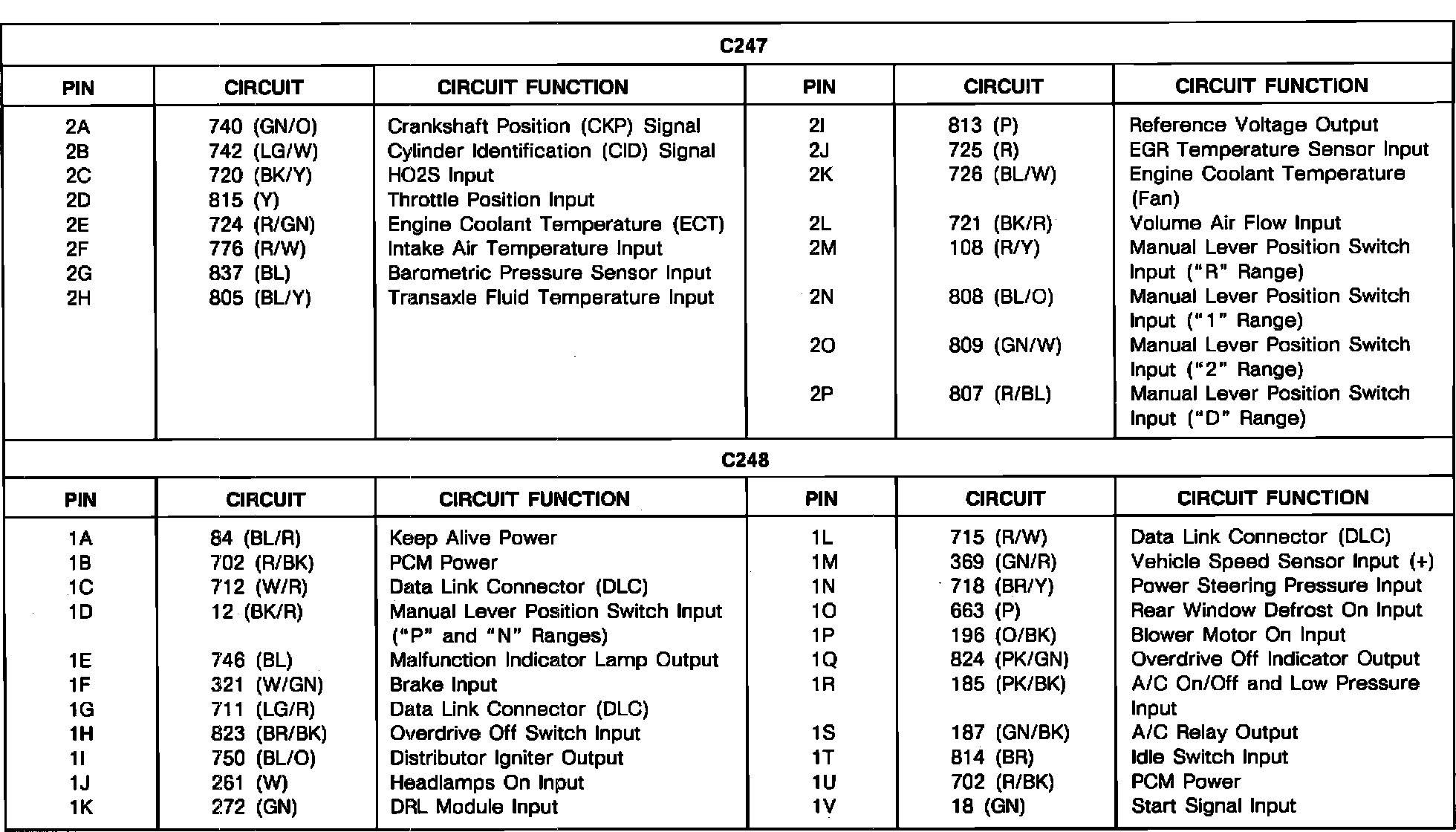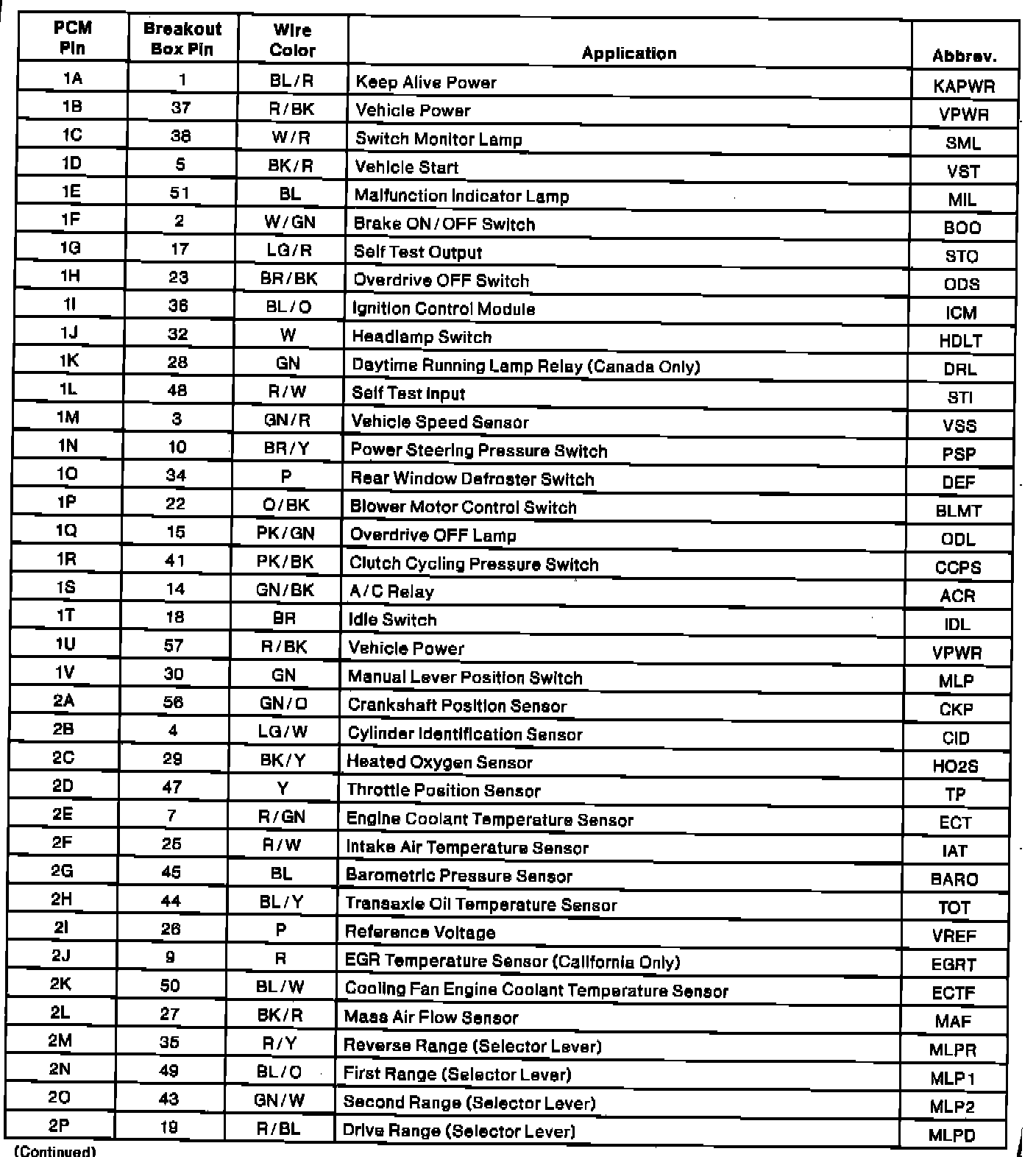 PCM Connector Pin Chart (Part 2):