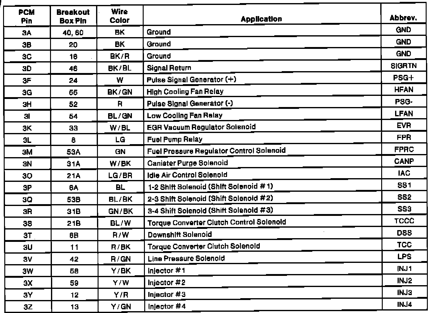 PCM Connector Pin Chart (Part 1):