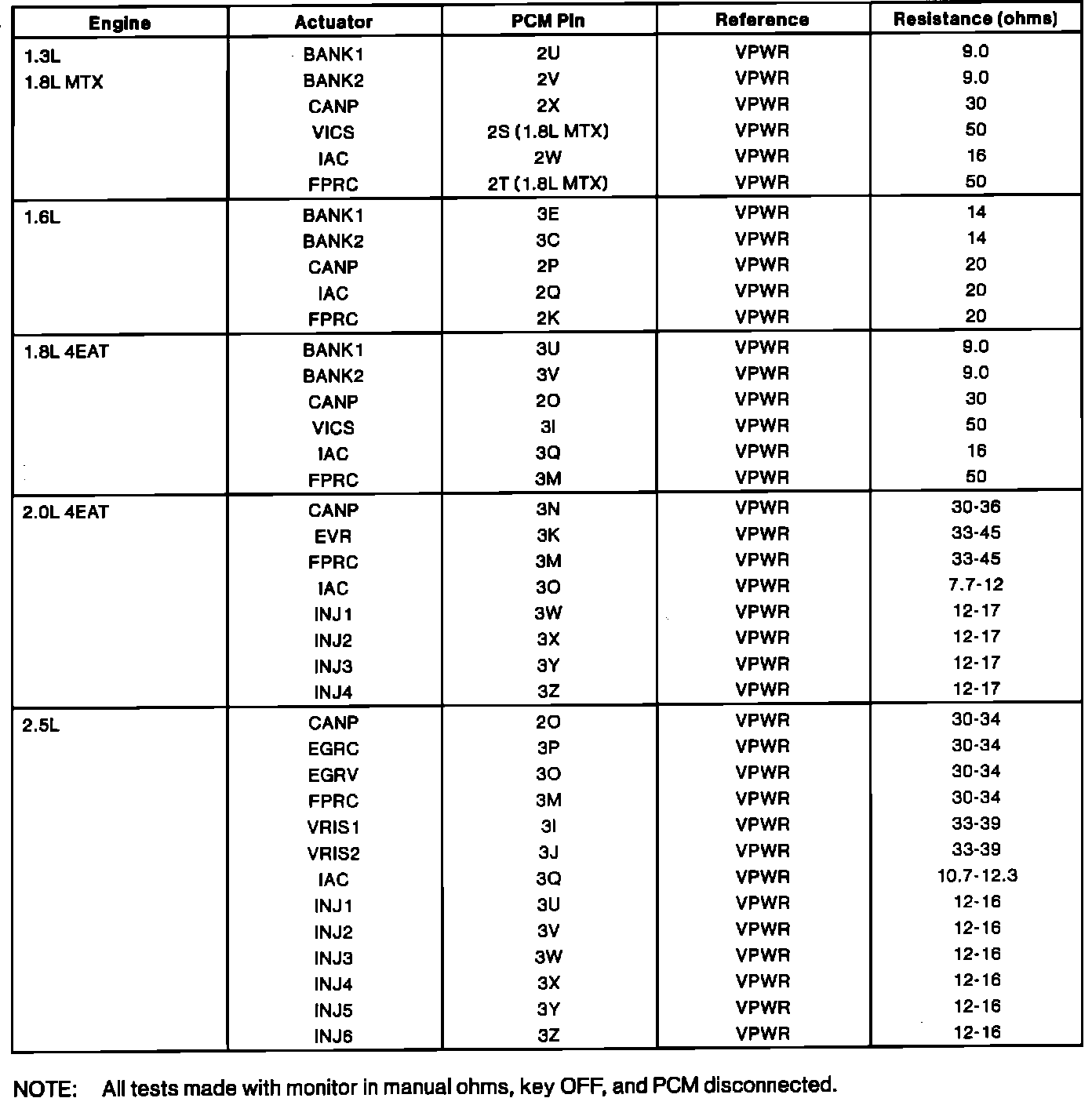 Static Resistance Values: