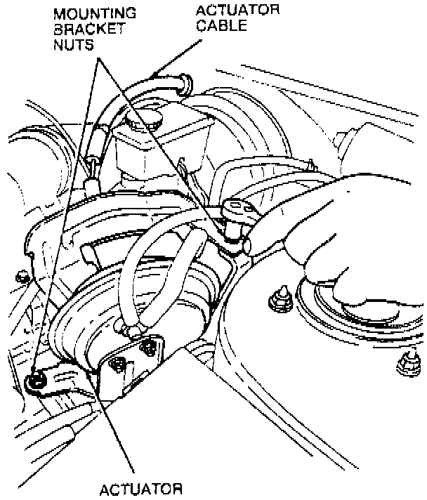 6. Remove two mounting nuts and bracket from cable side of actuator.
