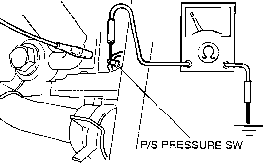 2. Check PSP switch continuity with an ohmmeter. Start engine, with wheels in straight ahead position (not being turned), there should be no continuity. Rotate the steering wheel fully left and right, the switch should show continuity.