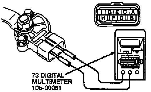 7. Use a Rotunda 73 Digital Multimeter 105-00051 or equivalent and ensure that there is continuity between the terminals.