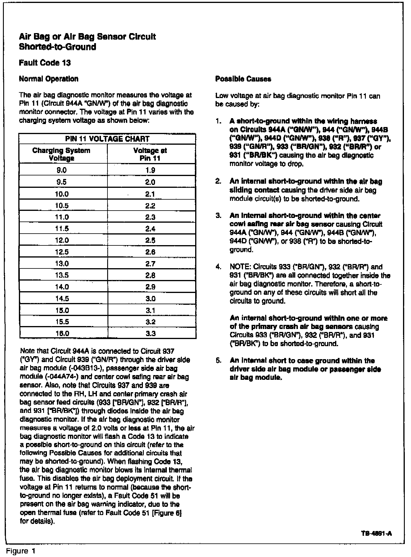 2. The diagnostic monitor recognizes the shorted wiring and flashes Code 13 (air bag circuit shorted). Refer to Figures 1 and 2.