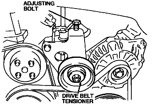 3. Loosen the drive belt tensioner center nut and adjusting bolt.