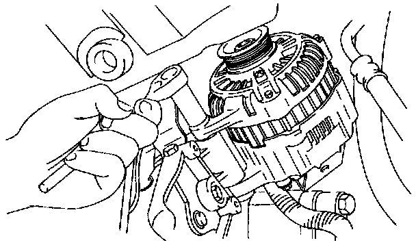 3. Tighten the generator lower through bolt to 37-51 N.m (28-38 lb-ft) and the generator upper bolt to 19-25 N-m (14-18 lb-ft).