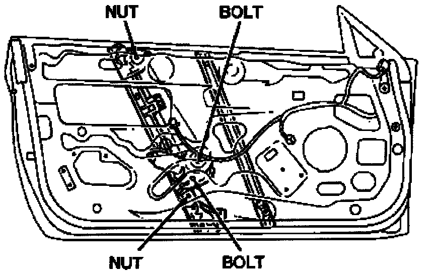 Tighten the two front door power window regulator nuts to 19-25 N-m (16-18 lb-ft).