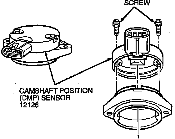 6. Remove camshaft position sensor retaining bolts and remove sensor.