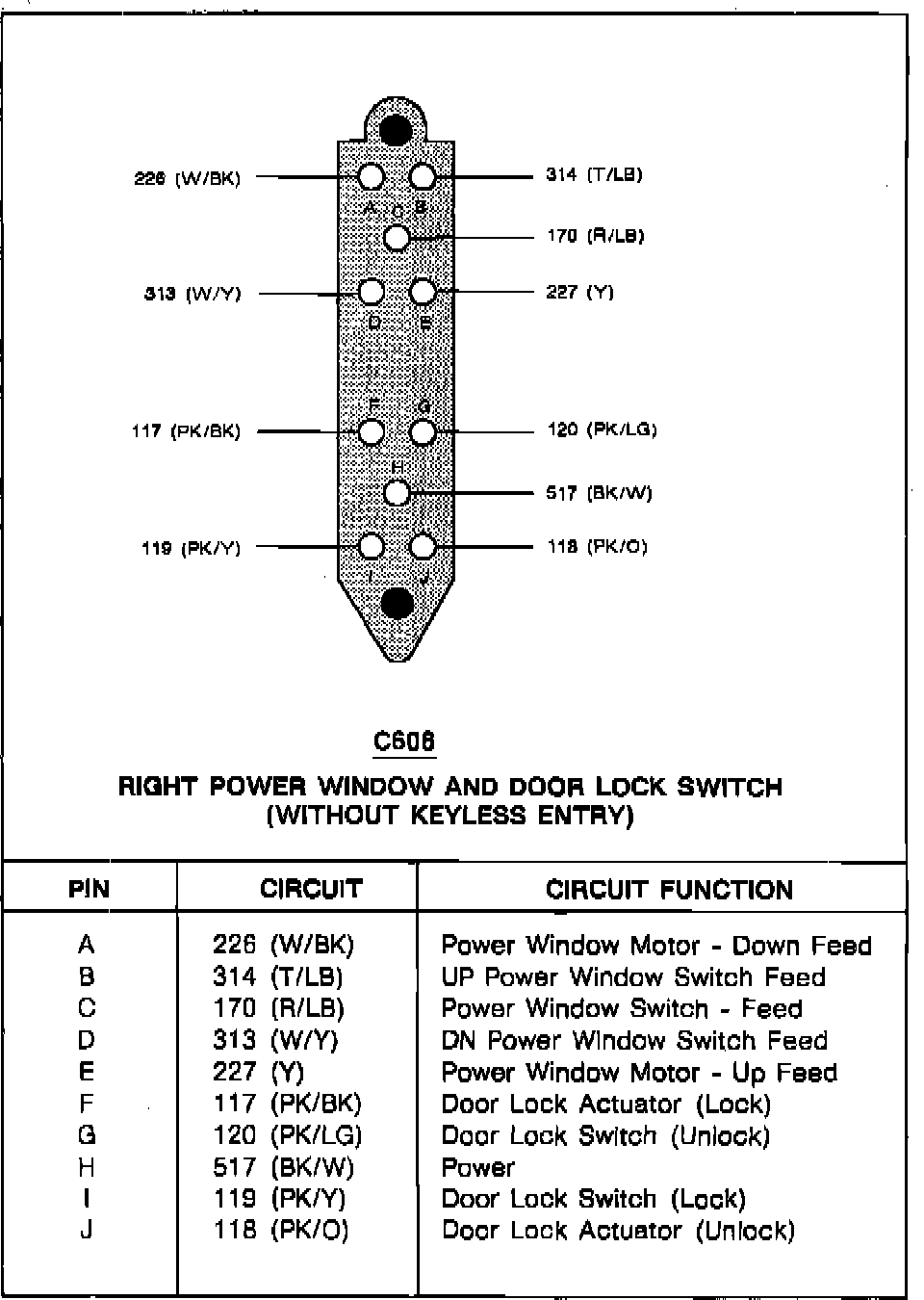 Right Power Window And Door Lock Switch (Without Keyless Entry):
