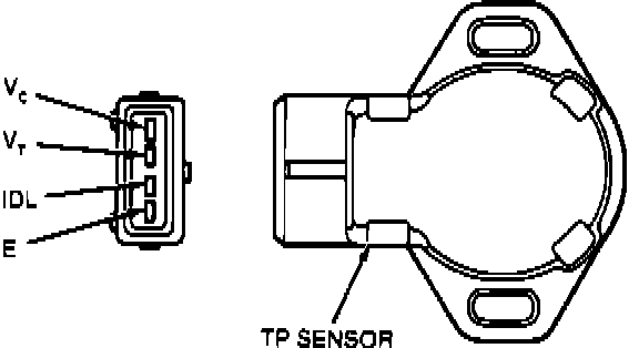 1. Disconnect the electrical connector from the throttle position sensor.2. Using a volt-ohmmeter, connect the volt-ohmmeter to the IDL and E terminals on the throttle position sensor.