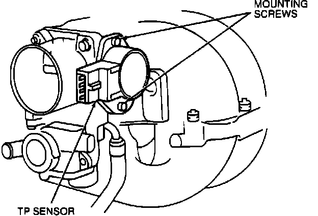 8. Tighten the throttle position sensor mounting screws while making sure not to move the throttle position sensor from its position.