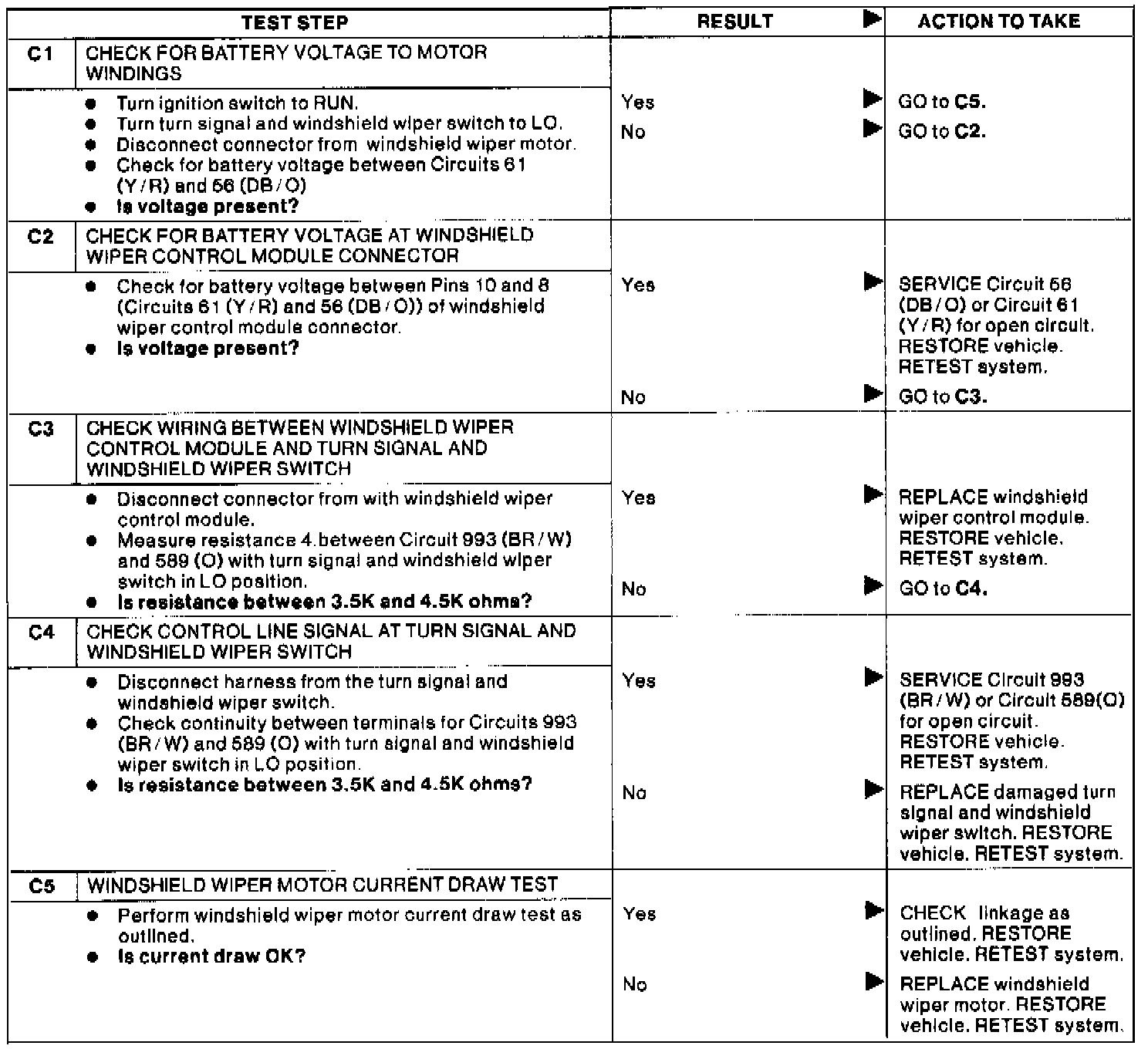 Test C: Windsheild Wipers Inoperative At Low Speed.: