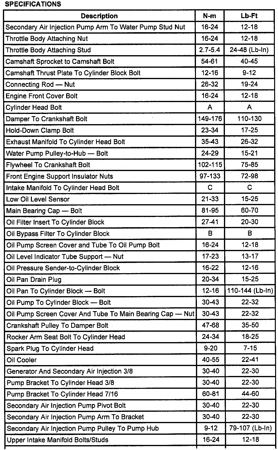 Torque Specifications