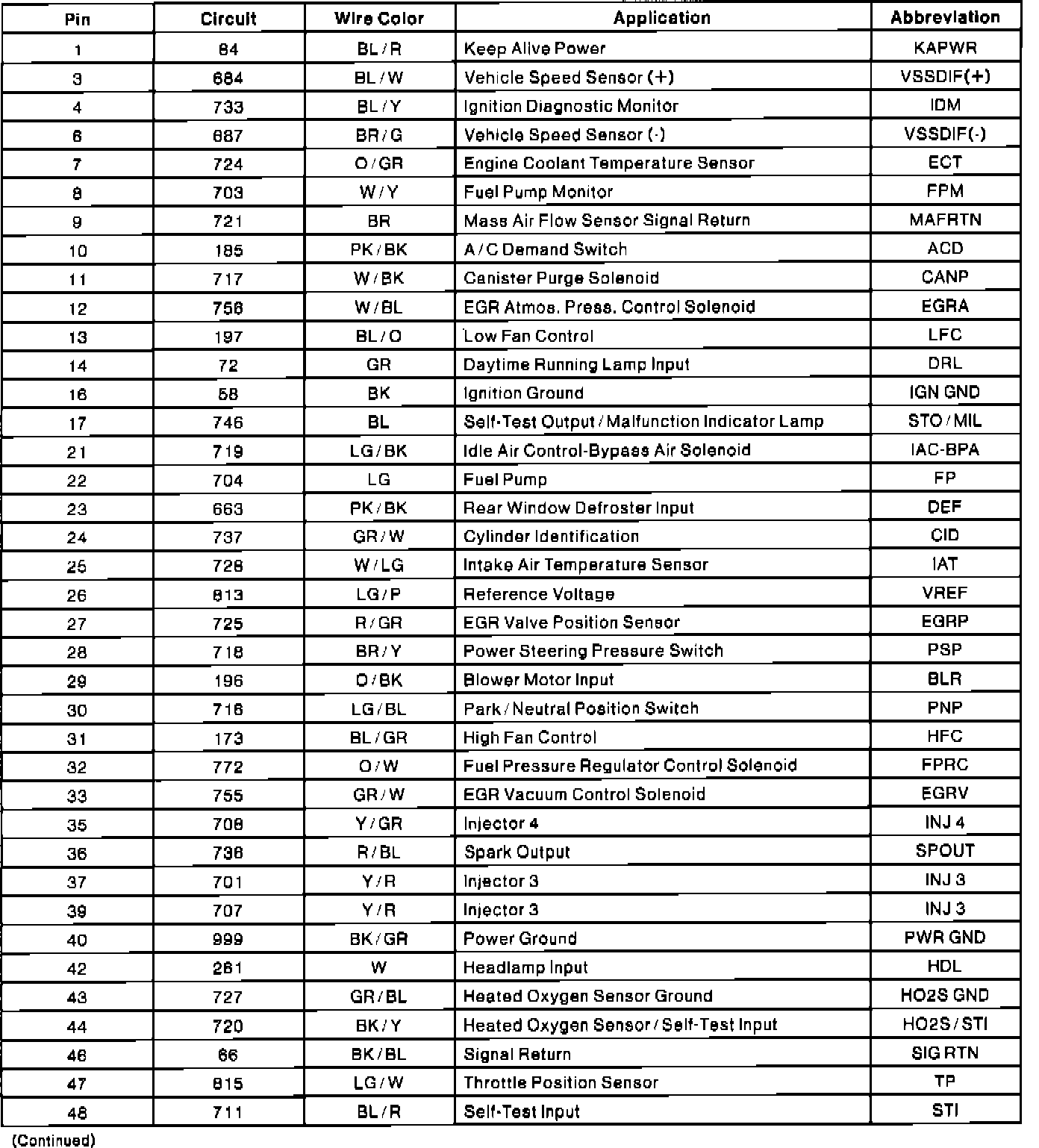 Powertrain Control Module (PCM) Connector Pin Usage: